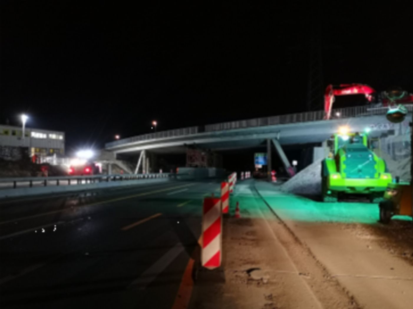 Démolition complète du PS de Colovrex en opération coup de poing. Mise en oeuvre du matelas de protection dès 22h00 la nuit du 27.11.2020 après coupure du trafic. Coupe des gardes corps du point, démarrage de la démolition. Exploitation avec pelles hydrauliques (35 à 70to), pinces et marteaux d’un tablier d’une épaisseur supérieure à 1.0m. Nettoyage et reprise des matériaux de démolition et du matelas de protection. Rendu de la chaussée Jura dès 08h00 le matin du 28.11.2020 et 12h00 pour la chaussée lac.