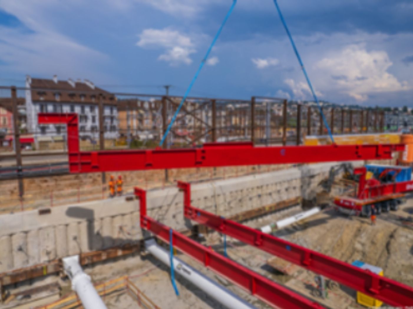Construction en limites avec accès très limités. Préfabrication d’un pont provisoire métallique dans nos ateliers et montage sur site pour faire face à cette contrainte. Travaux en limie ferroviaire et contraintes CFF. Travaux en site hyper urbain, en plein coeur de la gare de Renens, en zone piétonne et passage intensif des transports publics. Planning extrêment serré, multiplication des moyens matériels dans un espace très confiné pour y faire face. Planning tenu au jour près. Terrassement grande hauteur jusqu’à 20m avec extraction des matériaux à l’aide d’une pelle long bras stationnée sur le pont provisoire. Descente d’engins dans la fouille et extraction de ceux-ci en fin de chantier par grutage. Identification, tri et détermination des fillières d’élimination des matériaux de terrassement pollués (Type B, E et S). Préparation des plateformes de forage pour foreuse de 140 to.