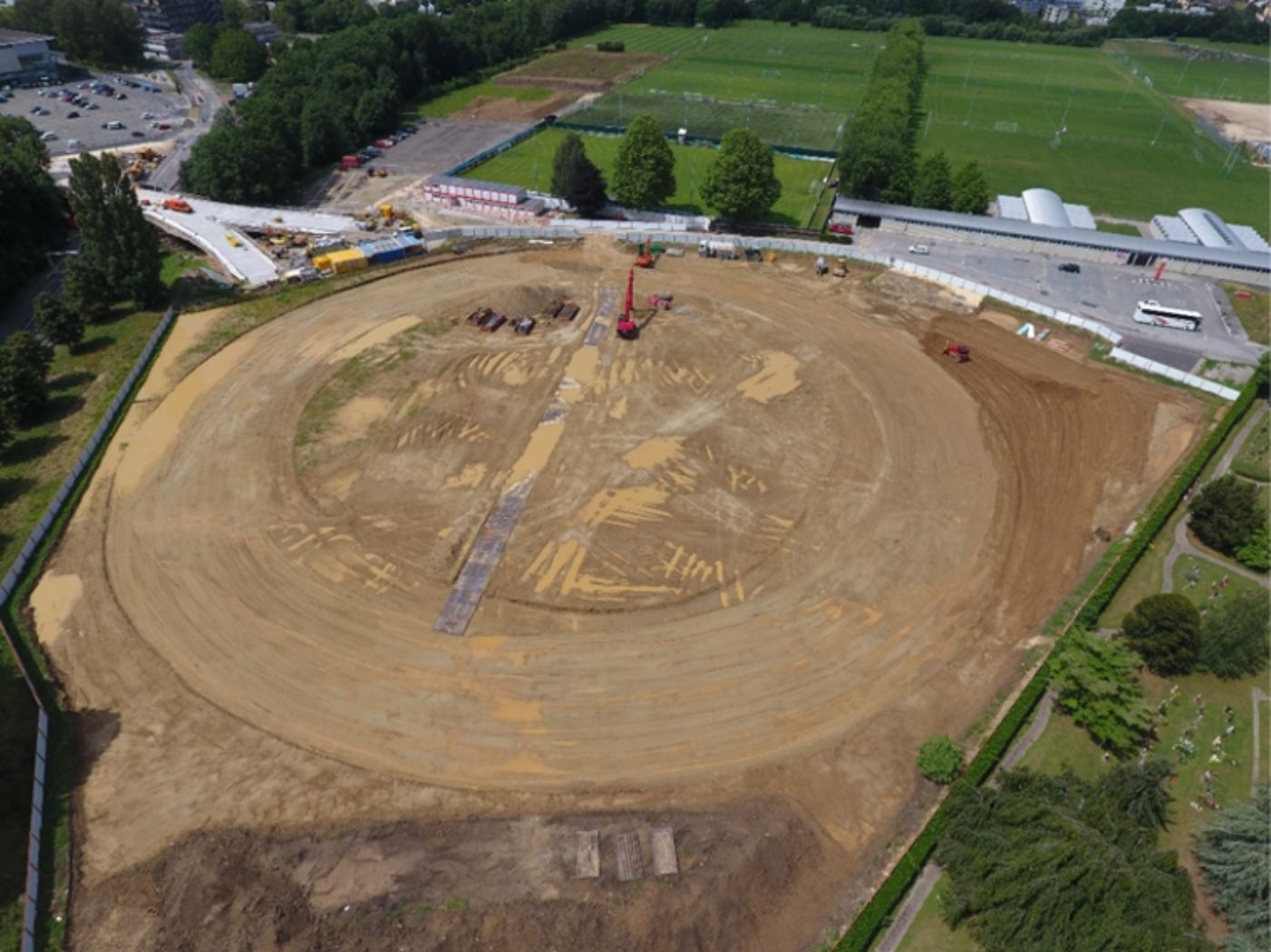 Logements pour étudiants et hôtes académiques. Décapage des horizons A et B sous contraintes pédologiques. Stabilisation du terrain en place et de plateformes en grave pour permettre la circulation de foreuses de pieux (200 to) et du transit général du chantier. Terrassement réalisé dans une enceinte de palplanches étanches butonnées en tête et dans des matériaux saturés en eau. Terrassement réalisé dans l’embarras de pieux. Remblayages périphériques entre palplanches et murs réalisés à l’aide d’un prototype développé par nos services.